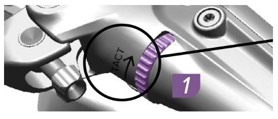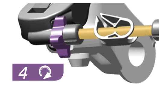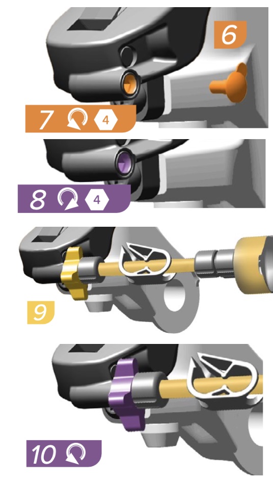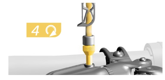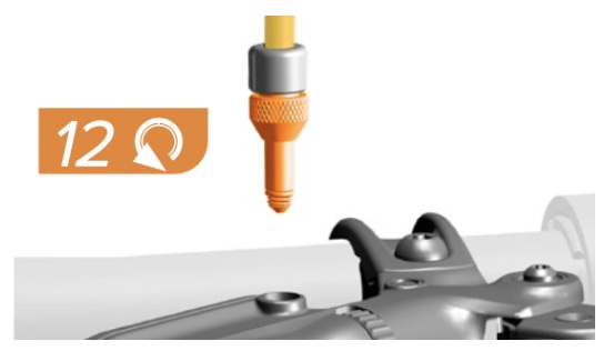 | 3 | CALIPER Install the bleeding edge syringe on the caliper – 8:54 of video – Remove the bleed port plug – Use a 4 mm hex wrench to loosen the bleed port valve 1/4 turn, then gently retighten the bleed port. Some oil may come out so be prepared for that and clean it up. – Install the syringe with the Bleeding Edge tool attachment into the bleed port. Push it into the bleed port until you hear and feel it click in place. – Rotate the Bleeding Edge tool attachment counter-clockwise (CC) one complete rotation to open the system. Do not exceed two complete rotations. | ![]() |