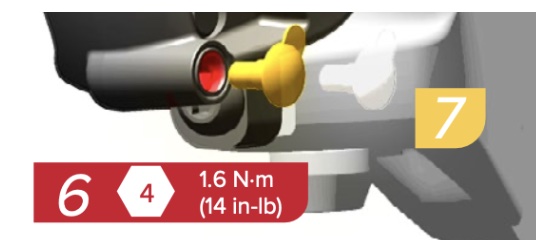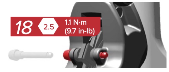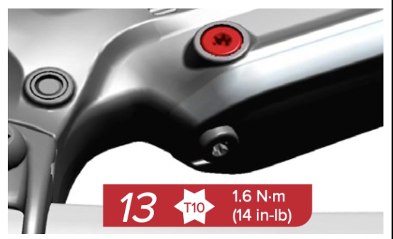 | 18 | Install the bleed screw. Use a T10 TORX to tighten the bleed screw to 1.6 N·m (14 in-lb). Clean any DOT brake fluid that drips from the bleed port with a shop towel. | ![]() |