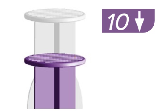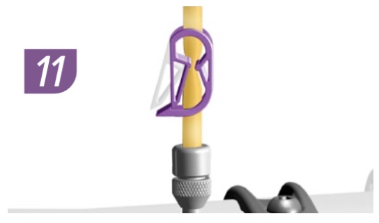 | 9 | CALIPER and LEVER Step 2: Hold the syringe at the caliper vertically while slowly pulling the syringe plunger at the lever upward to draw fluid from the syringe at the caliper. – Stop before any air enters the hose tube at the caliper. – If needed: repeat Steps 1 and 2 until only a small amount of bubbles appear. | ![]() |