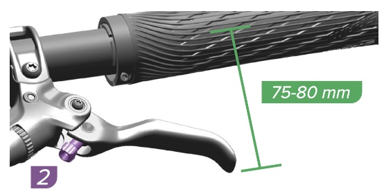 | 5 | LEVER Rotate the lever Reach Adjust knob, or hex adjuster, until the lever blade is 75-80 mm from the centerline of the handlebar. | ![]() |