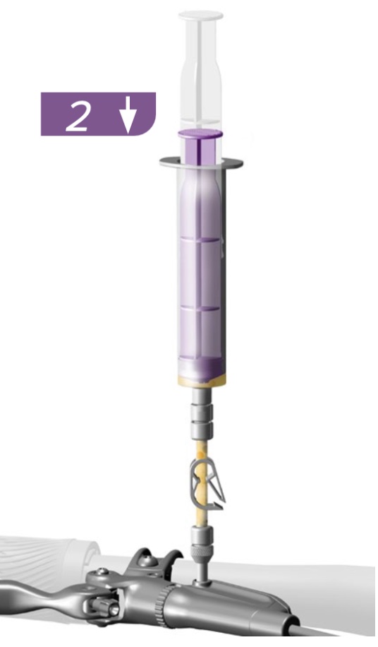| 7 | LEVER Thread the 3/4 full syringe into the lever bleed port. | ![]() |