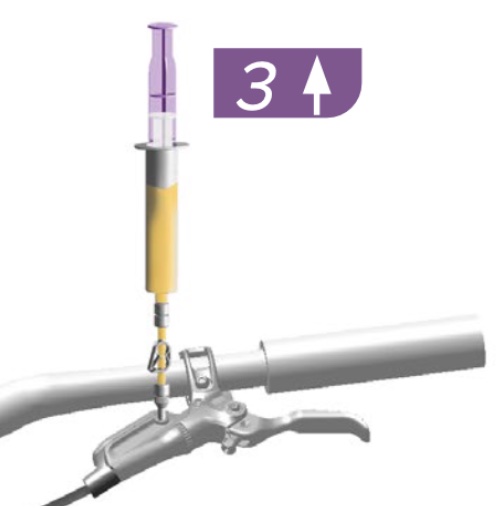 | 1 | To assemble a syringe for the brake lever, thread the bleed clamp assembly with a threaded bleed fitting onto one of the syringe plungers. It may come assembled already. – Fill the syringe for the brake lever with DOT 4 or 5.1 brake fluid until it is about 3/4 full. – Hold the syringe upright, cover the tip with a shop towel, and depress the plunger just enough to remove any air bubbles. The syringe should still be close to 3/4 full. – 6:05 of video – Once the air bubbles are gone, close the clamp! | ![]() |